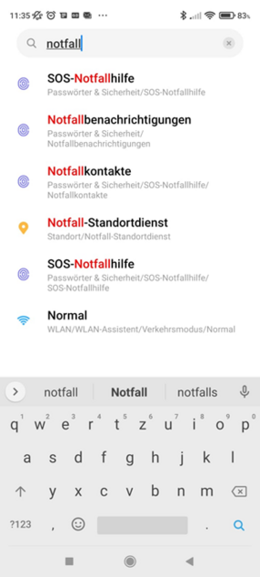 Cell Broadcast-Einstellungen oder auch Notfallwarnungen/Notfallbenachrichtigungen lassen sich je nach Gerät unter Verwendung folgender Suchbegriffe finden: